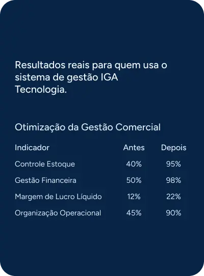 O Sistema IGA Tecnologia centraliza vendas, estoque, notas fiscais e relatórios em uma única plataforma, simples de usar mesmo sem experiência técnica.