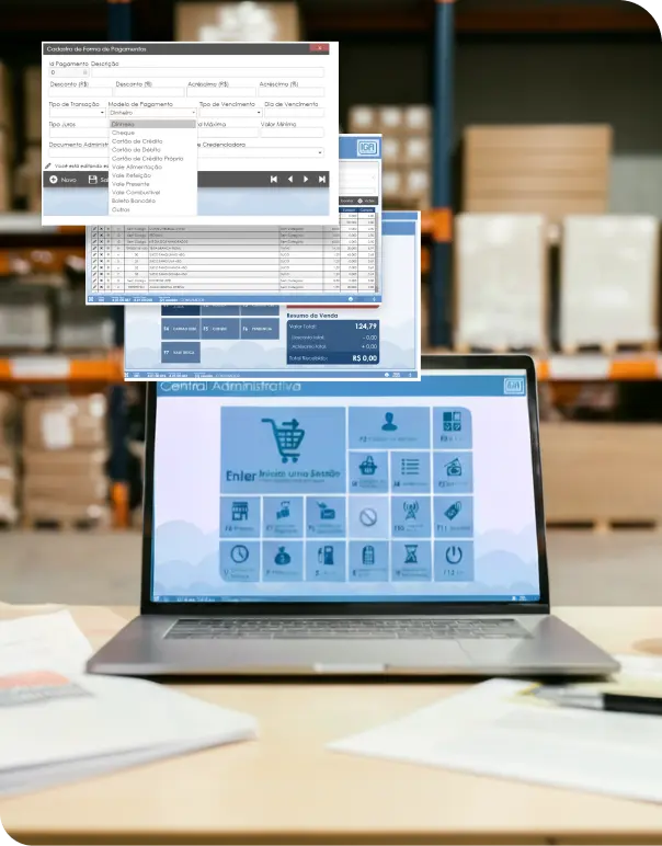 Interface rápida para vendas no balcão. Agilize o atendimento e reduza filas.